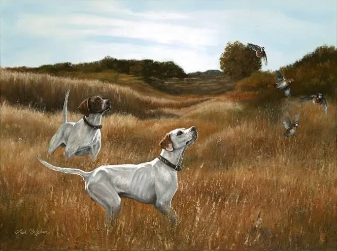 Leah was introduced to American Field Horseback Field Trails and has been able to experience the excitement of seeing her own dog, competing for the National Championship at Ames Plantation in Grand Junction, TN ...standing on point, head and tail held high. This has inspired her to create works of art depicting dogs and the wildlife associated with the sport and hunting.