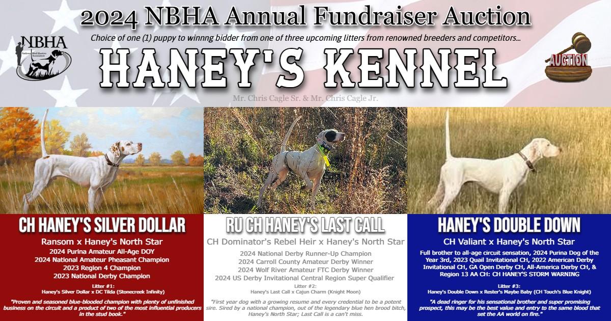 We are thrilled to announce an extraordinary auction, offering the chance for the winning bidder choice of one (1) puppy from one of three upcoming blue-blooded litters from renowned breeders and competitors, Haney's Kennel of Mr. Chris Cagle Sr. and Mr. Chris Cagle Jr.!