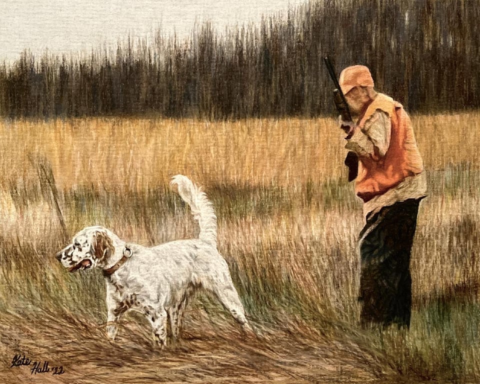 About Kate : Kate Hall is an outdoor artist who resides on an Angus cattle farm in Tennessee, where she began hunting at an early age. During her 13 years as a flight attendant, Kate visited 27 countries and all 50 states. She now spends her time traveling across the country in search of rising trout and upland birds with her husband and their English Setter. In his first two seasons they hunted on public lands in MT, KS, SC, AL, NC, KY and TN for quail, ruffed grouse, sharptail grouse, woodcock, pheasant, prairie chickens, and hungarian partridge. Upland hunting has enriched Kate's life and influences much of her colored pencil work.