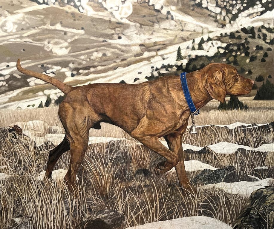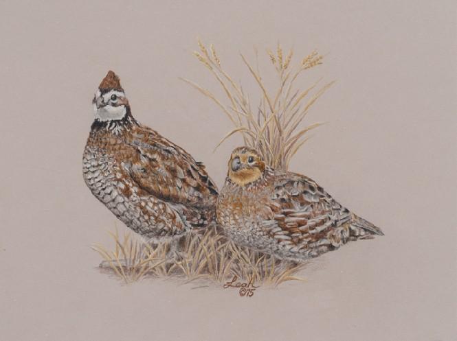 Leah was introduced to American Field Horseback Field Trails and has been able to experience the excitement of seeing her own dog, competing for the National Championship at Ames Plantation in Grand Junction, TN ...standing on point, head and tail held high. This has inspired her to create works of art depicting dogs and the wildlife associated with the sport and hunting.