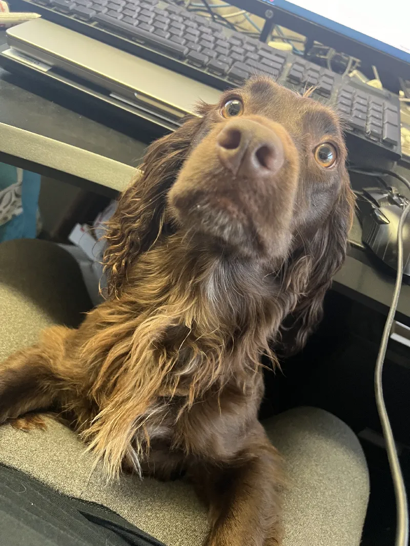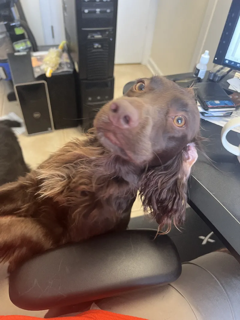 Anybody else's Cocker Spaniel have to go wherever you go? 😂😂😂