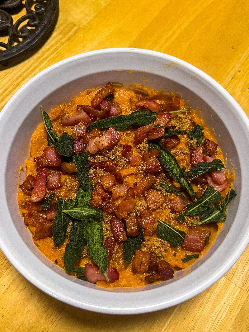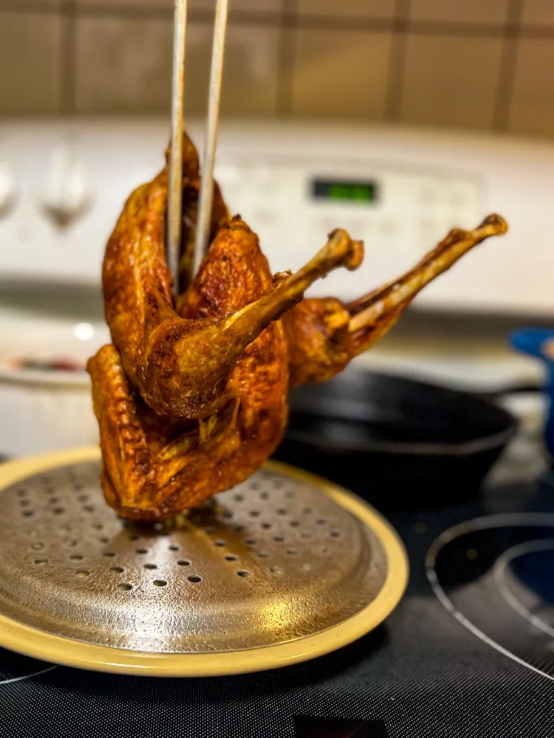 With daylights saving time now in effect, it feels like we have a lot more time to spend trapped in the house. As today dragged on, we used our extra hour to do an adhoc mini Thanksgiving dinner to two. We made this deep fried, Cajun injected split pheasant, homemade sage stuffing, cranberries relish with orange zest and some smoked maple bourbon sweet potatoes with bacon. Tami Lynn Davis