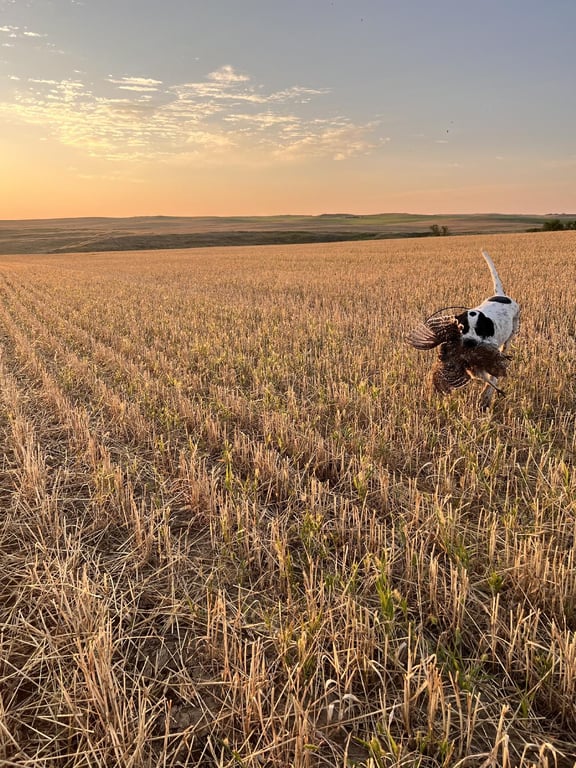 The first bird of the 2023 season came from the MT prairies. I thought there was no way a sharptail would be sitting in the middle of this field when the dog hit point and there wasn't a prayer that a covey of huns would sit that long. Sure glad I made the walk out to her, been wrong too many times when I don't trust the dog.