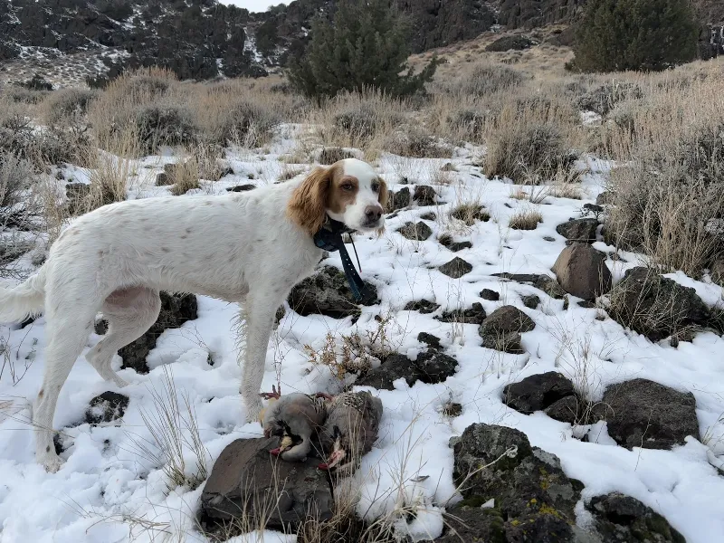 Wheels is closing in on 10 years old. Went out to the steep cliff country where she got her start as a chukar dog for the first time in several years yesterday. She didn’t run as fast or cover as much country as she used to, didn’t need to. She ran straight to the right places and pinned a huge covey of chukar. The youngster I put down with her popped up on the other side of the covey and blocked them from running along the cliff. They were about 800’ vertical above me and it took me several minutes to get there but the girls still had them. Got a double on the covey rise, took a quick photo of the the star of the show (much to her chagrin) and worked our way back down the hill. Tough, steep country and one heck of a death march up the hill, but what a memory! Gotta love those old dogs that can still get it done â¤ï¸
